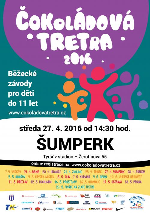 Přihlášky a registrace: prostřednictvím on-line formuláře na stránkách www.cokoladovatretra.cz, případně na adresu tom.vykydal@seznam.cz do úterý 26. 4. 2016 do 20:00 hod.