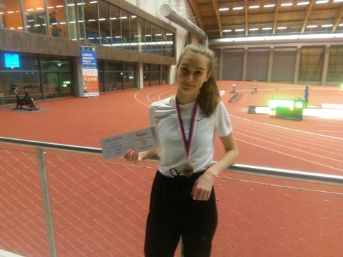 Druhou medaili pro Šumperk vyválčila Marie Škopová, která si v pětiboji vytvořila pět osobních rekordů a díky tomu se zařadila s celkovým součtem 3019 bodů na třetí místo a vybojovala tak bronzovou medaili v kategorii žákyň. Krátké překážky zaběhla za 9.54s, do výšky se přenesla přes 144cm, koulí vrhla do vzdálenosti 9.46m, ve skoku do dálku zapsala 461cm a v závěrečné osmistovce skvělých 2:28.33s. Gratulujeme. Třetí do party Marie Štoplová si vytvořila čtyři osobní rekordy, ale díky nevydařené dálce z toho bylo jedenácté místo. Maruška zaběhla 60m př. za 9.84s, skočila do výšky 150cm, vrhla koulí 6.86m, skočila do dálky 440cm a zaběhla osmistovku za 2:31.41s.