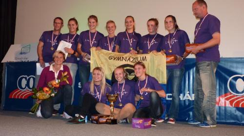 Břeclav - V úterý 9.10. proběhlo v již tradiční destinaci, Břeclavi, republikové finále CORNY středoškolského poháru v atletice. Družstvo dívek ve složení Petra Opekarová, Pavlína Březinová, Lucie Domská, Veronika Opekarová, Michaela Theimerová, Renata Kohoutová, Zuzana Vavříková, Eliška Maixnerová a Martina Kukulová zvítězilo s celkovým bodovým součtem 9120. Děvčata si tak zajistila již čtvrté vítězství v řadě. Je třeba vyzdvihnout soudržnost týmu, maximální nasazení a bojovnost. Gratulujeme. Chlapci obsadili pěkné jedenácté místo v celkovém součtu 8493 b. Měli sice na ještě lepší umístění, nicméně již postup byl pro ně obrovským úspěchem. Výsledky a fotky naleznete v odkazech.
