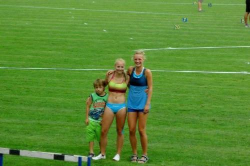 Pěkné výkony předvedla Áďa Dubová. Šedesátimetrový sprint zvládla v čase 8.04s, na trati 150m se jí čas zastavil na hodnotě 18.94, což je její nový osobák. Solidní stopadesátku předvedla žákyně Bára Hudečková, které časomíra naměřila čas 20.45s. Tuto trať si vyzkoušeli také naši chlapci, konkrétně Martin Timko (18.51s), Filip Valenta (18.84s) a Mira Haltmar (19.19). Martin s Filipem pak ještě velmi dobře zaběhli dvojnásobnou trať, třístovku, kde pokořili 40 vteřinovou metu a výsledné časy byly 38.55s respektive 39.34s. Z technických disciplín se ukázala na svém prvním podzimním trojskoku Peťa Opekarová, která sama v soutěži doskákala do vzdálenosti 11.60m. Jenda Jílek si pak střihl rovnou 6 disciplín :) Výčet jeho výkonů je zde: Dálka (543cm), výška (170cm), koule (11.36m), disk (32.88m), oštěp (46.80m) a kladivo (26.66m).