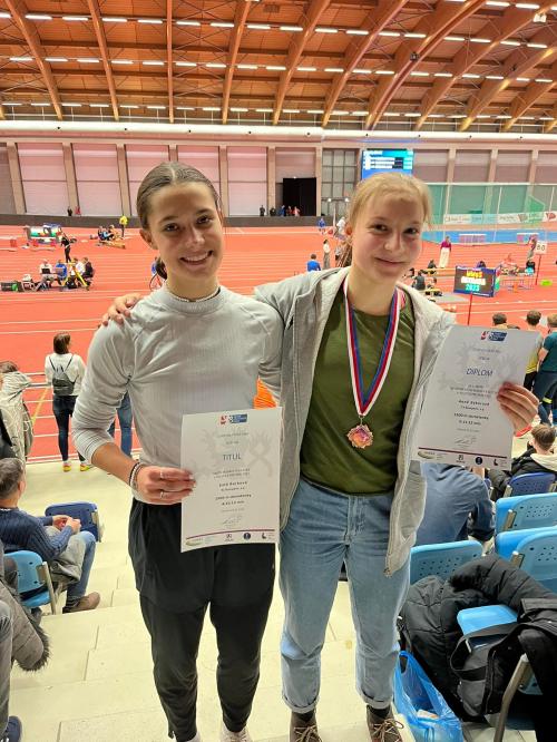 Nejcennější kov si na krk pověsila dorostenka Ema Berková, která ovládla běh na 1500m ve skvělém čase 4:43.12s. Ema letos v hale předvádí neuvěřitelné výkony na středních tratích! Ve stejné disciplíně se zadařilo také Aničce Sýkorové, která si ve stejné kategorii časem 5:11.53s doběhla pro bronzovou medaili. Zlatou medaili vybojovala také juniorka Klára Dobešová ve skoku do výšky jejím letošním nejlepším výkonem 162cm. Pro stříbro si dosprintovala Marie Štoplová ve finále dorostenecké šedesátky. V něm si vyrovnala letošní osobní rekord časem 7.89s. Poslední medaili si vyskákala dorostenka Sára Sikorová ve skoku o tyči a byl z toho za výkon 290cm bronz.