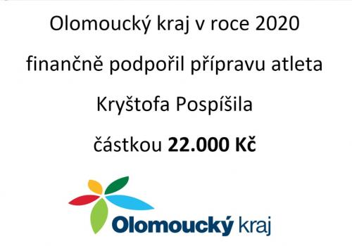 V roce 2020 podpořil Olomoucký kraj našeho atleta Kryštofa Pospíšila. Děkujeme.